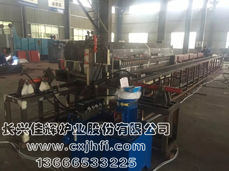推舟式燒結(jié)爐 此設(shè)備可根據(jù)用戶要求進行定制、定做,服務(wù)熱線:13666533225 推舟式燒結(jié)爐系連續(xù)式生產(chǎn)型工業(yè)爐,利用石墨板承載不銹鋼料盒,配合推桿一盒接著一盒地推至加熱區(qū)內(nèi)部,在氣氛保護狀態(tài)下進行粉末還原、粉末冶金制品的燒結(jié)等熱處理。 用戶可選擇性采購料盒回旋裝置,整體成連貫式生產(chǎn)。 該生產(chǎn)線具有控制先進、方便、節(jié)能顯著、維修方便等特點,全線加熱區(qū)均采用PID多區(qū)控溫。保護氣氛可以選擇采用氮氣或氫氮混合氣體保護。