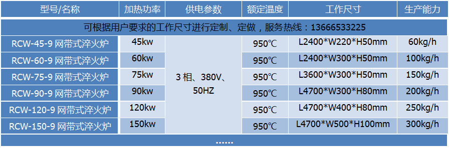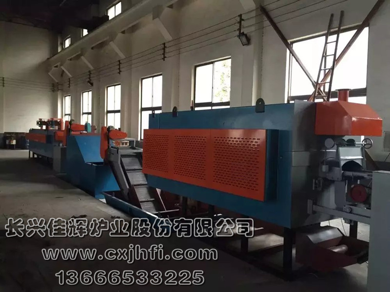 有馬弗網帶爐熱處理生產線 此設備可根據用戶要求進行定制、定做,服務熱線:13666533225 馬弗網帶爐熱處理生產線系連續(xù)式調質熱處理爐,它是利用間歇前進的網帶將工件通過溫控的加熱區(qū),然后落入淬火油槽,并由提升機自動取出的產品進行清洗再到回火爐的連續(xù)式調質熱處理。它能在可控氣氛下進行淬火,薄層滲碳、碳氮共滲等熱處理工藝。在熱處理的過程中,工件相互間無碰撞,均衡的通過爐膛加熱,加上可控氣氛的作用下,阻止空氣進入爐內。因此,處理后的工件表面光潔、無脫碳、表面均勻、變形小、質量高。該設備具有自動化程度高,參數易于調節(jié),勞動強度低,不污染環(huán)境,節(jié)約能源等優(yōu)點。 該設備由網帶式淬火爐,噴淋式清洗機、網帶式回火爐組成自動化流水線。并可加配發(fā)黑發(fā)藍、上油、烘干生產線。 主要用于批量性的中小型機械零件(如標準件、軸承、傳動鏈、自攻螺釘、紡織五金、手工具、彈簧、彈墊、汽車零部件等)?蔀橛脩暨M行熱處理工藝調試,工件熱處理小試提供條件。
